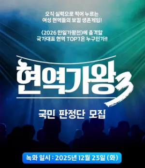 현역가왕 시즌3은 MBN이 선보이는 대표 트롯 서바이벌 예능으로, 여성 트롯 가수들이 실력과 감성을 겨루는 프로그램입니다. 2025년 12월 23일(화) 밤 9시 50분 첫 방송을 시작으로 매주 화요일 밤에 방영됩니다.